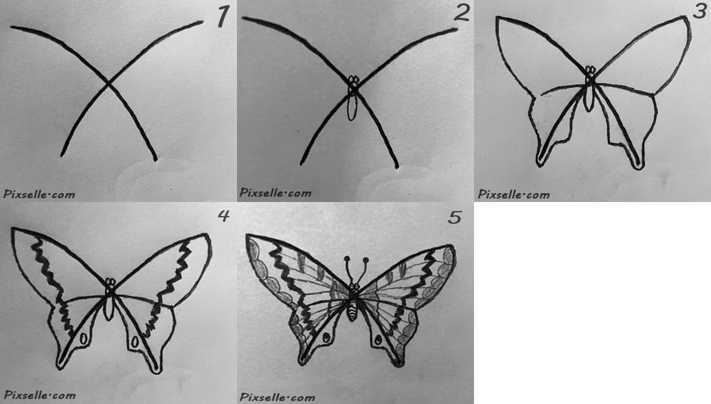 Kelebek çizimi çalışmamla sizlere en basit ve en temel şekilde sadece birkaç dakikada adım adım kelebek çizimini gösterdim. Kelebek çizimi yaparken özgür bir şekilde kelebeğe kendi yeteneklerinize göre farklı desenler ve çizimler yapabilirsiniz. En basit şekilde adım adım kelebek çizimi. İki farklı kelebek çizimi.